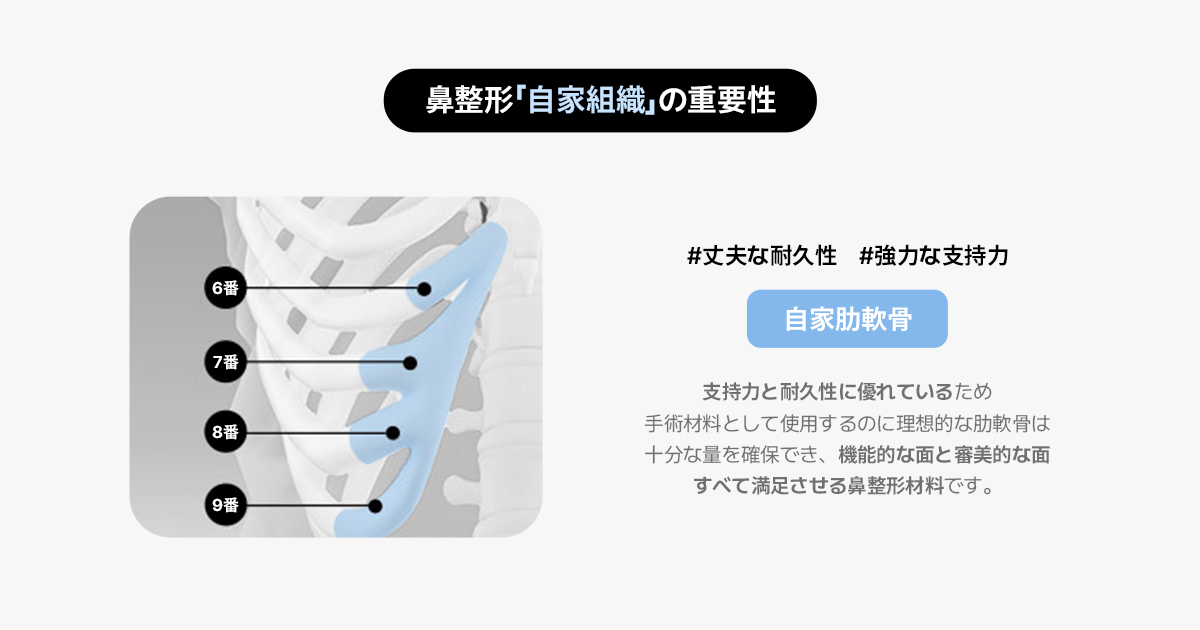 今日は、その経験をもとに、鼻整形で多くの方が気になる鼻整形の材料である自家肋軟骨を初手術で選択することでどのような利点があるのかについてお話したいと思います。