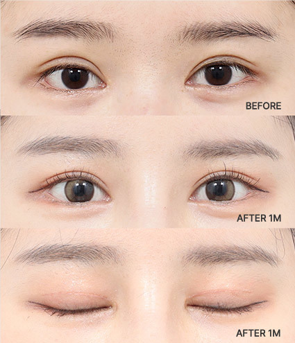 • 目元の調整とまぶたを開ける力の強化:瞳の大きさに合わせて適切に目元を調整し、ラインをしっかり固定することでまぶたを開ける力を高め、はっきりとして自然な二重ラインに仕上げます。