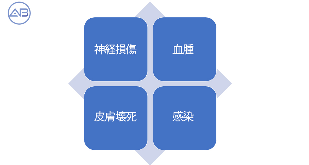 論文では主要な顔面リフト術の副作用として神経損傷、血腫、皮膚壊死、感染などを挙げています。これらの副作用について一つずつ見ていきましょう。