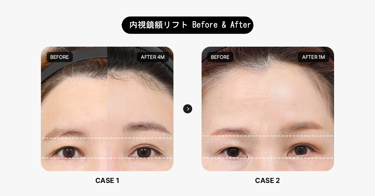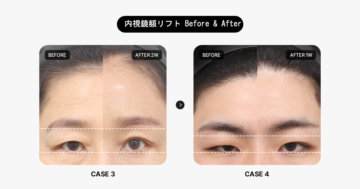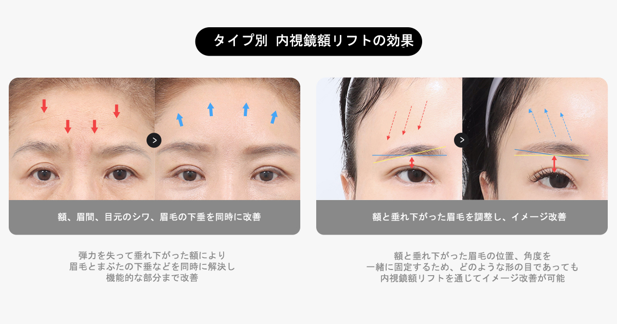 内視鏡額挙上の前後を比較してみると分かるようにこれによりよりすっきりとした印象を作ることができます。