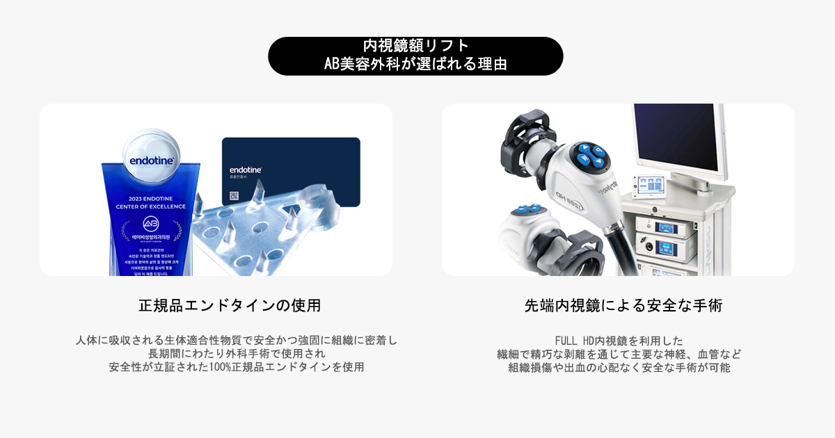特に内視鏡額挙上で使用される「エンドタイン」というプロテーゼはFDAの承認を受けた安全な素材で、額の骨に固定する方式で使用されるため、リフトアップ効果を最大限に高めることができます。