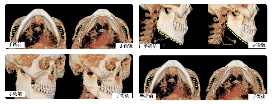 皮膚の厚さ、脂肪層、筋肉量を3D-CTで精密に分析し、骨切除量を最適化します。 -