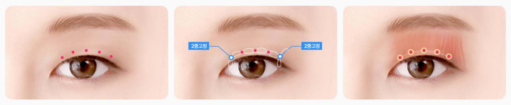 埋没法の手術とは異なり抜糸がある手術の場合は回復過程がさらに必要になります。 執刀医の手術法によって差はありますが、脂肪除去を同時に行う埋没法の場合には、手術後に 微小な傷と抜糸があるので約5日後からメイクが可能です。目頭切開、垂れ目切開、 目上切開や二重切開、上眼瞼、下眼瞼、眉挙上術の場合には、基本的に切開法で手術を 行うので約7日後から可能で、目の下再配置または、回復の状態によっては約3-7日後から 抜糸を行うので軽めの洗顔とベースメイクの化粧は可能です。