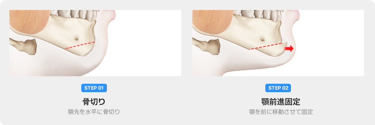 顎が大きくてひどい顎無しの場合には顎先前進術が効果的です。