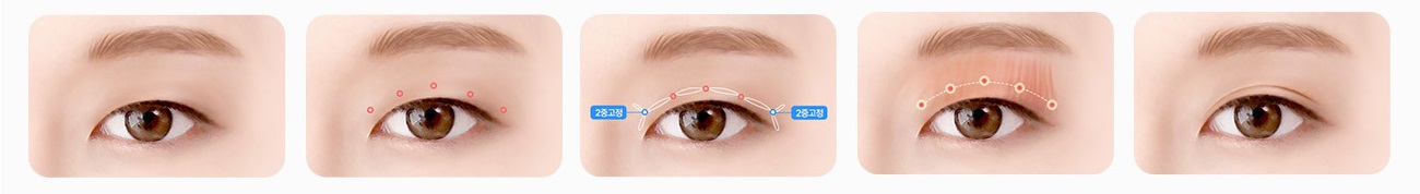 埋没法の二重術と自然癒着法は手術法の特性上、基本的な解剖学構造に大きな変化なく本来の構造を維持 するため初手術とほとんど差がなく腫れが引いていく程度は同じぐらいです。