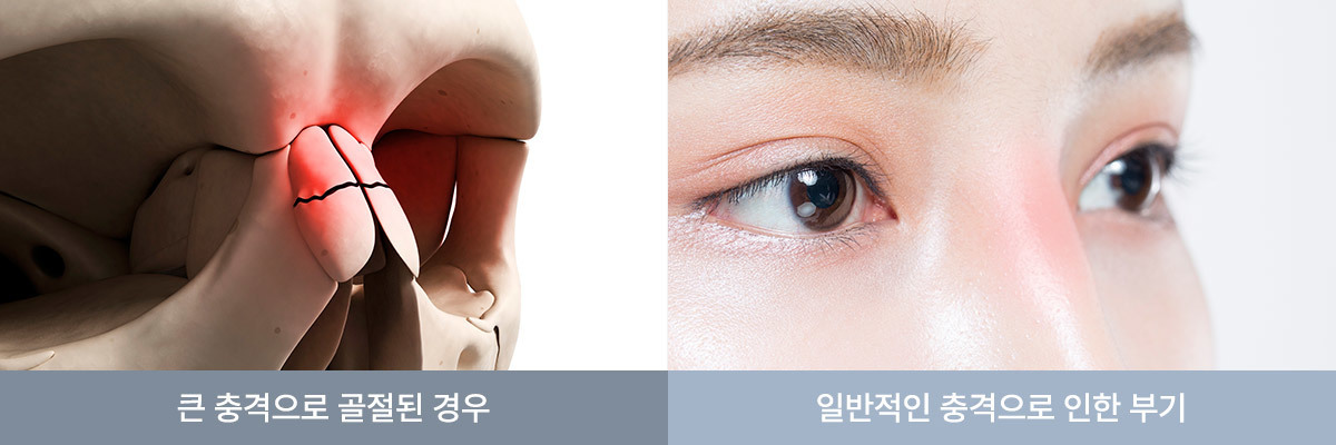ぶつかった鼻の部位がただ赤くなる程度であれば骨折の可能性は低いです。しかし、ぶつかった部位の腫れが酷いと感じた場合は骨折の判断のため検査が必要です。腫れの程度が酷い場合には即ち骨折の把握が難しいため、ぶつかった部位をアイスパックで冷やし1~2週間後、手術した病院にご来院後、CT検査と担当専門医の精密診断・検査が必要です。診断結果、骨折が発生したとしても保形物の位置や鼻中隔に大きな問題がなければ別途の治療はせず経過を観察する場合が多いのでそこまで心配されなくても大丈夫です。