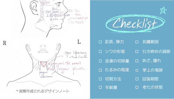 個人にあったリフティング、デザインノートを使用して、手術前の手術方法および手術計画を確立し、デザインカウンセリングノートを作成する